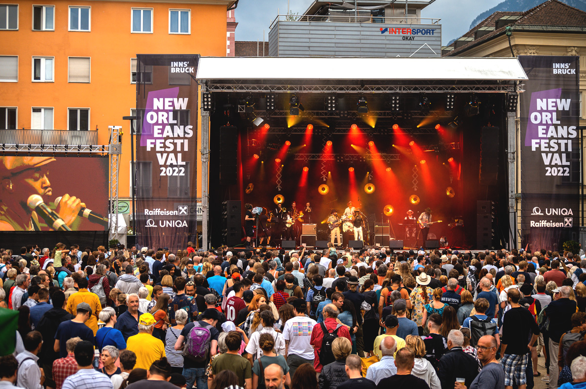Wenn sich des Sommers die Hüften der Tirolerinnen und Tiroler im Takt bewegen, wenn Tiroler Finger rhythmisch snippen, wenn die Tauben am Landhausplatz Evergreens summen, dann, ja dann, ist Festival-Time! Nach zwei mageren Sommern, über die uns tolle heimische Bands mit Kleinkonzerten drüberhalfen, planen wir wieder Groß lassen das New Orleans Festival in alter Pracht wiederauferstehen!