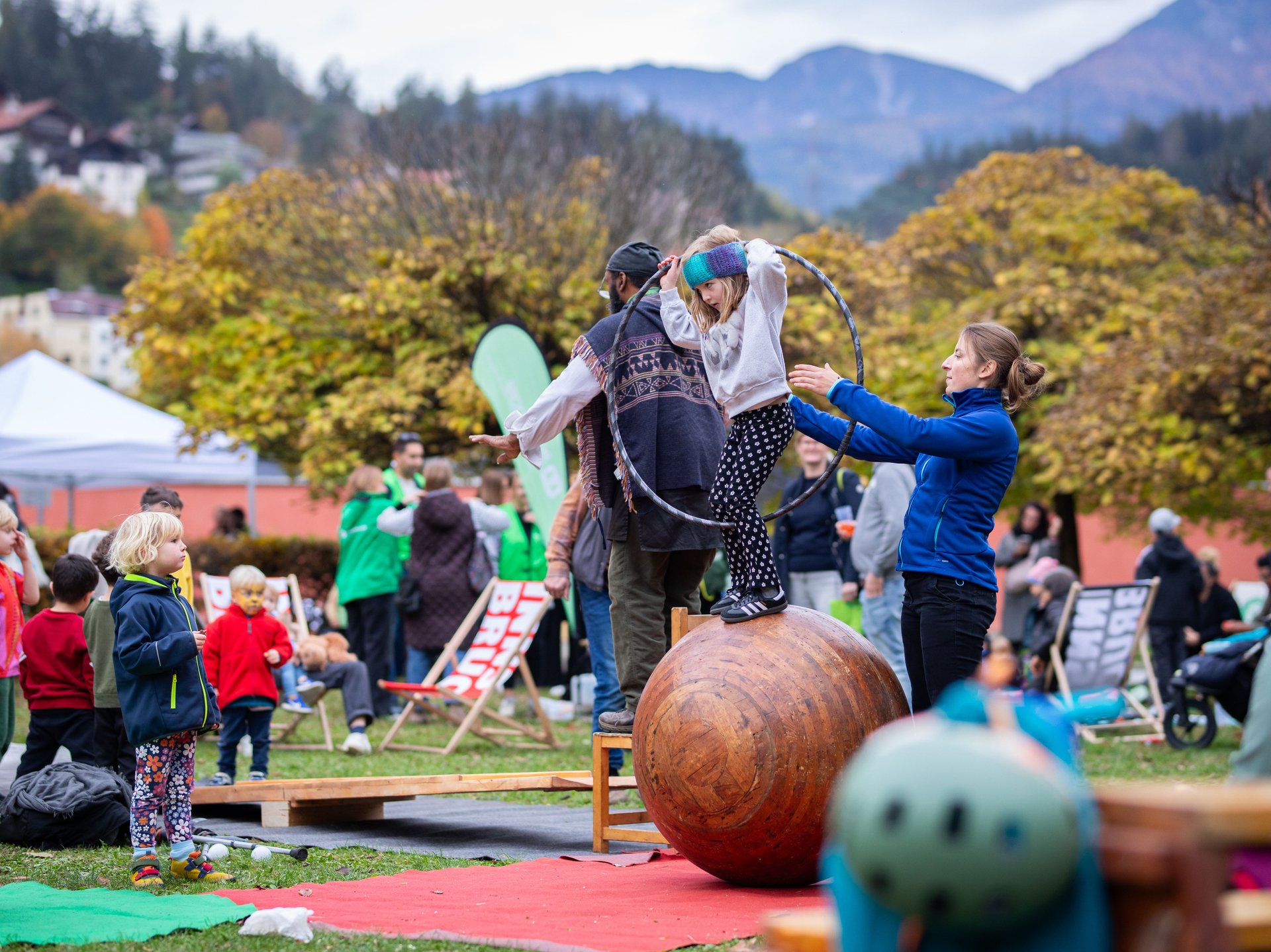 Beim großen Mitmachzirkus wird man zum/r echten Zirkusartist:in und kann selbst Kunststücke ausprobieren, balancieren und jonglieren.