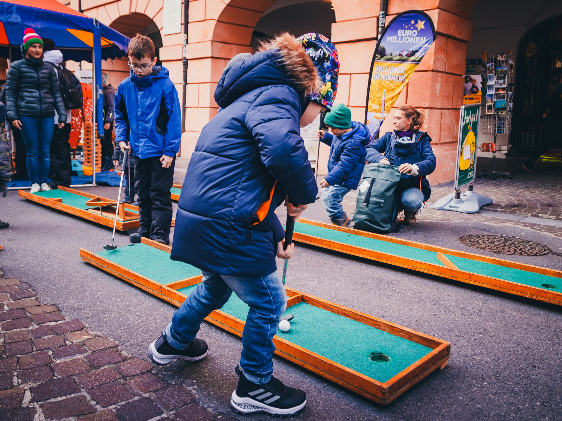 - Bewegungs- und Spielestationen mit Riesenjengasteinen, Bobbycars, Selbstläuferstationen, Kugelbahn u.v.m. (Spielbus der Jungschar)