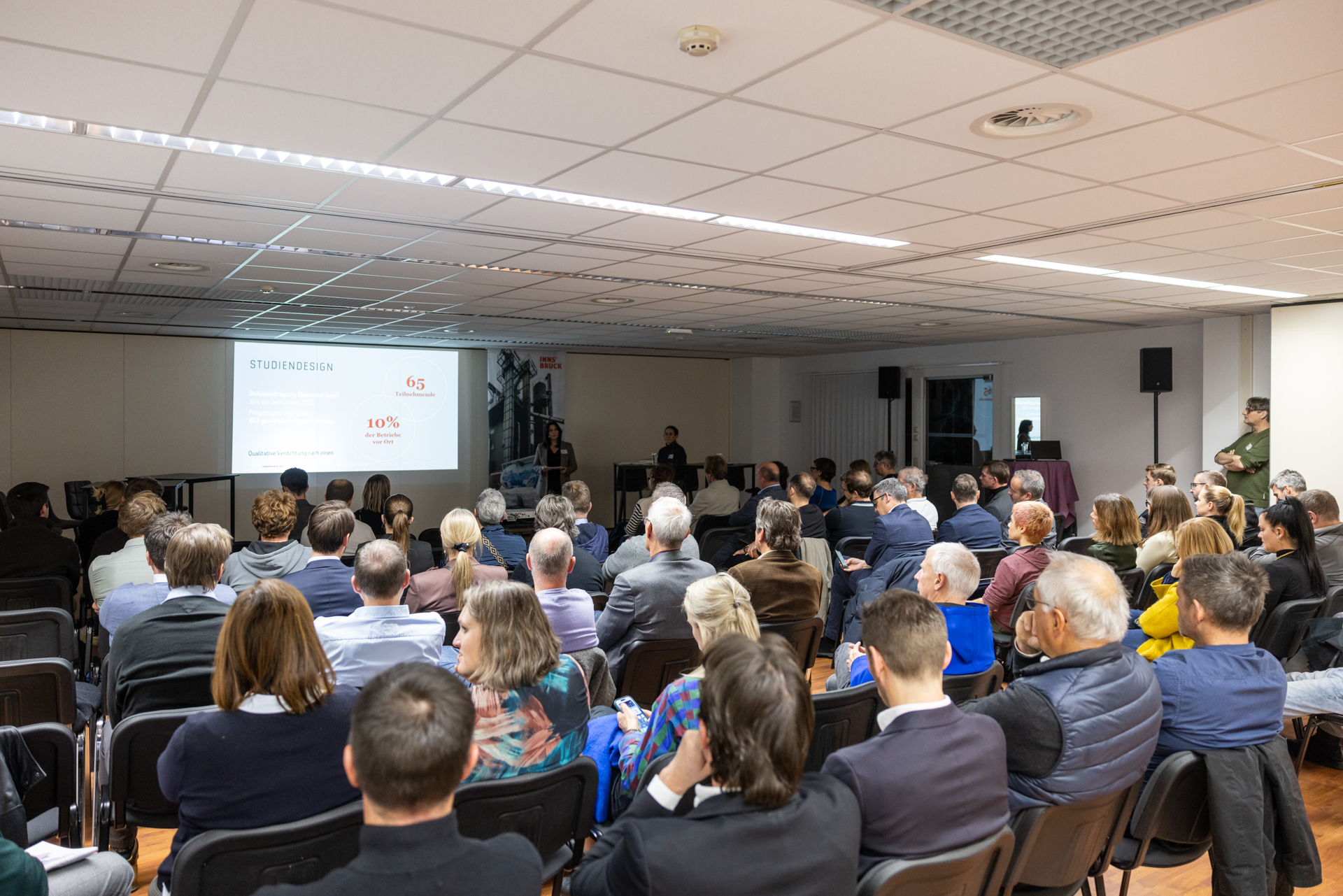 Die Veranstaltung „Rossau gestalten! Gewerbeareale bedarfsgerecht entwickeln“ zog rund 70 Teilnehmer:innen an und verdeutlicht das große Interesse am Themenkomplex "Bauen in der Rossau". Das Quartiersmanagement Rossau bot damit, in Kooperation mit der Standortagentur Tirol und P&R Veranstaltung, neuerlich die Möglichkeit, sich zu informieren, offen auszutauschen und Herausforderungen gemeinsam in Angriff zu nehmen.